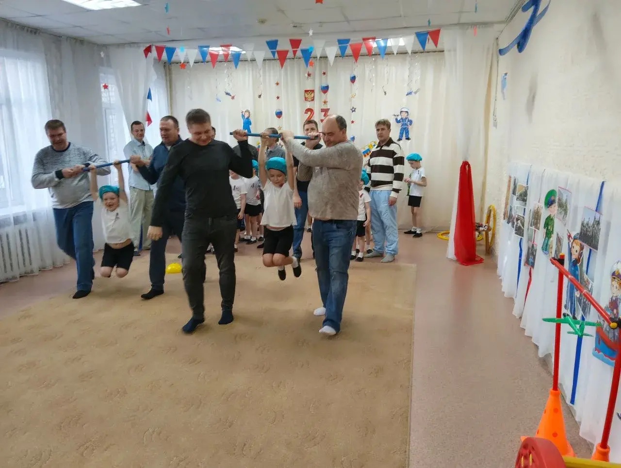 Накануне дня Защитника Отечества к нам в детский сад приходили наши папы и дедушки! Дети читали им стихи, посвящали песни и, конечно, соревновались в ловкости, силе и выносливости! Было весело, шумно, интересно, а проигравших не было!